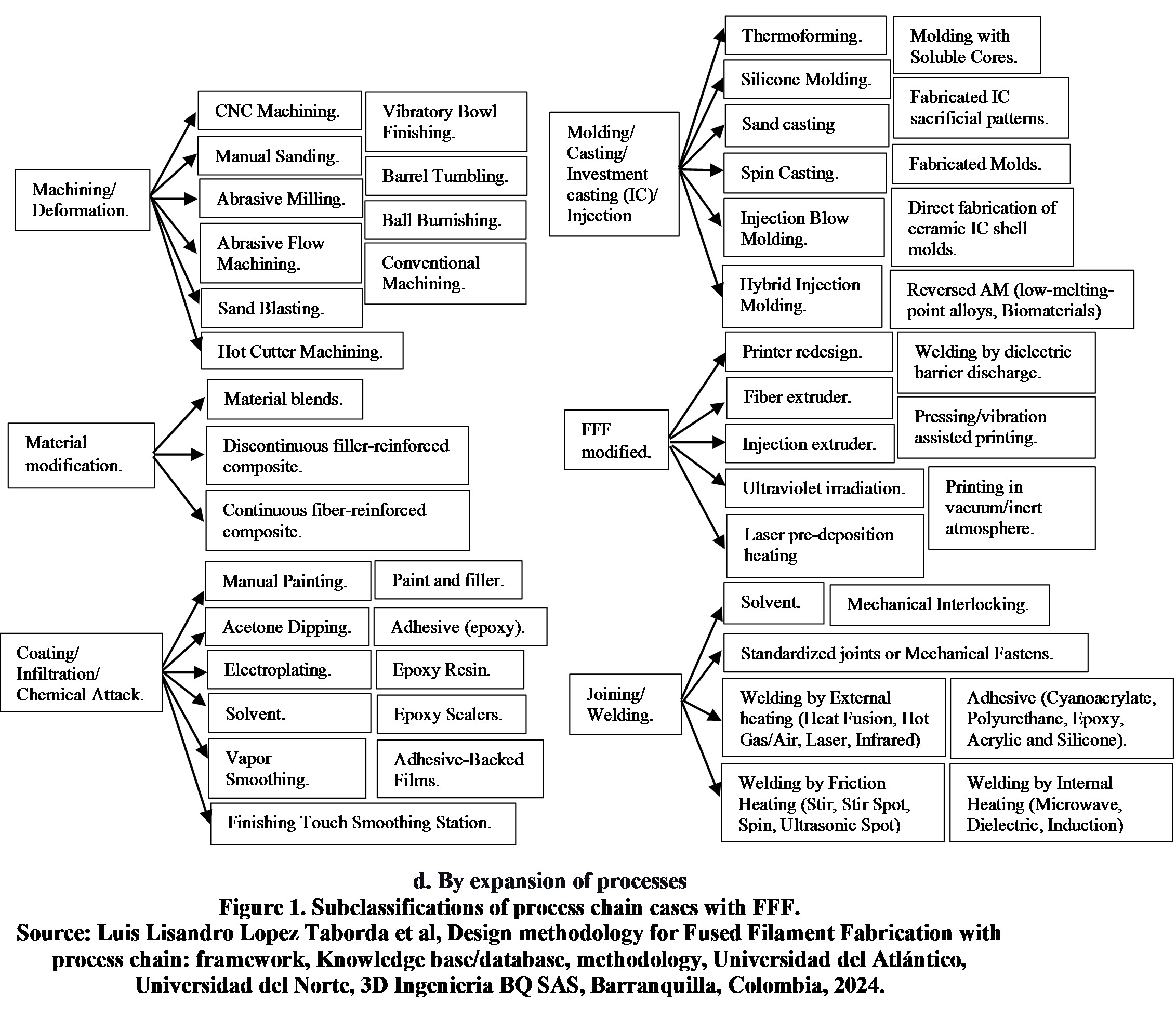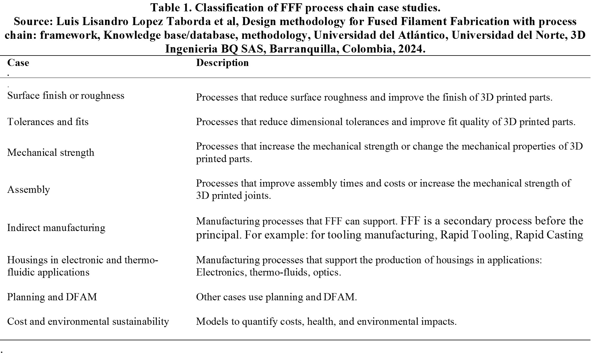 Figure 1 summarizes the FFF process chain case subclassifications obtained from the previous table and during the analysis of cases.