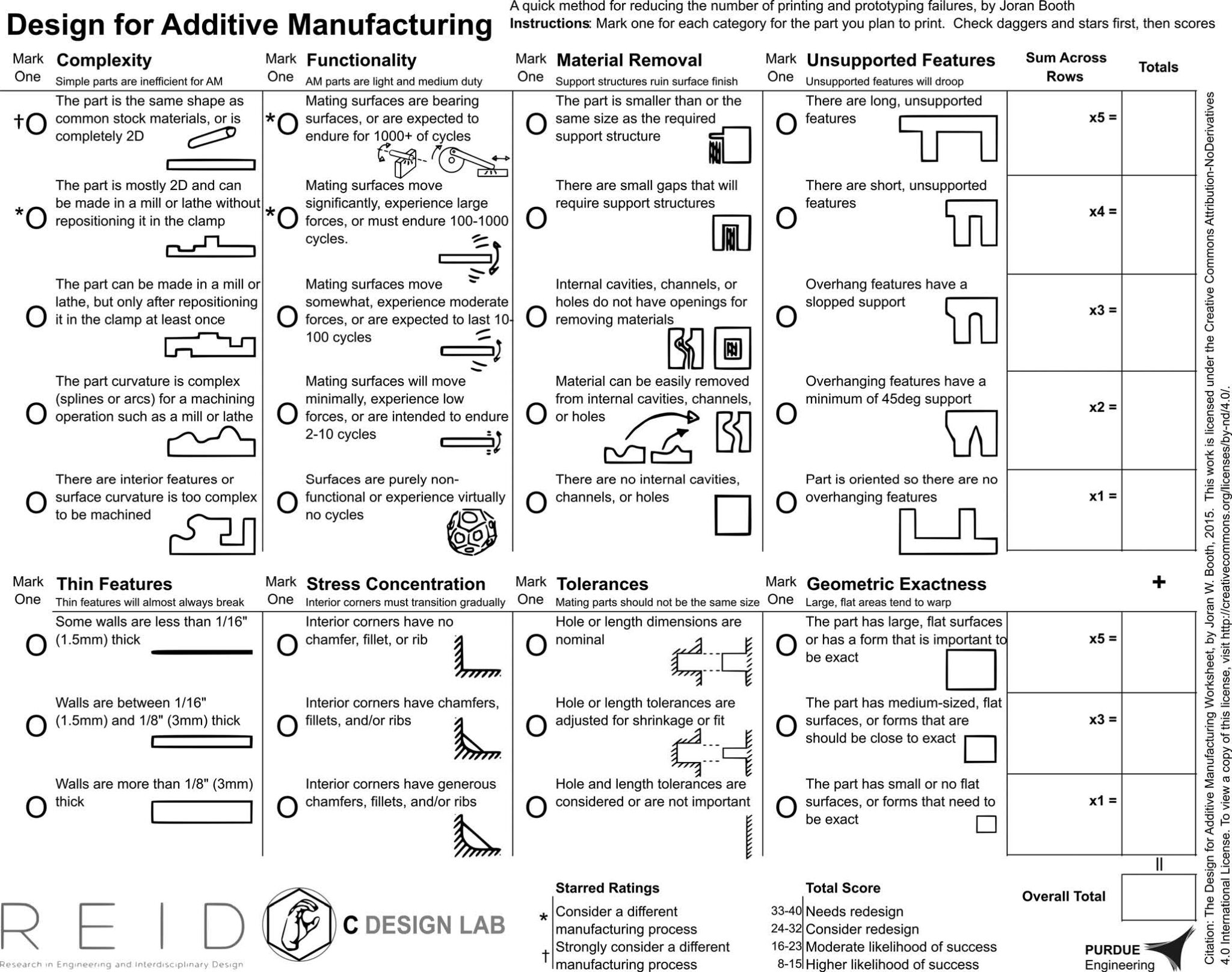 In addition, J. W. Booth et al. [10] developed a worksheet to tell whether a part is manufactured by additive or conventional manufacturing. The worksheet, presented in Figure 5 below, serves as design guidelines or rules.