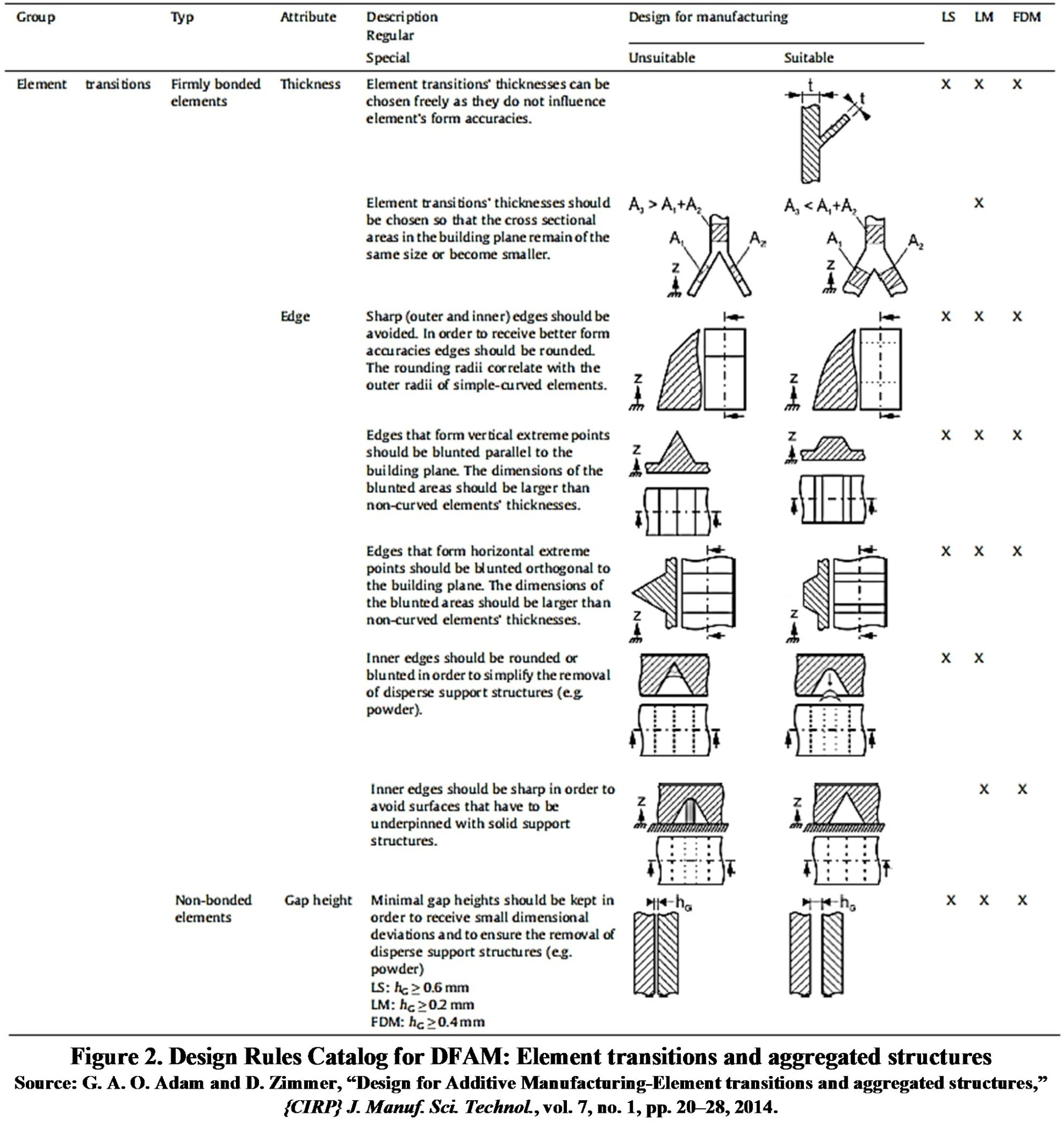 [6] G. A. O. Adam and D. Zimmer, “Design for Additive Manufacturing{\textemdash}Element transitions and aggregated structures,” {CIRP} J. Manuf. Sci. Technol., vol. 7, no. 1, pp. 20–28, 2014.