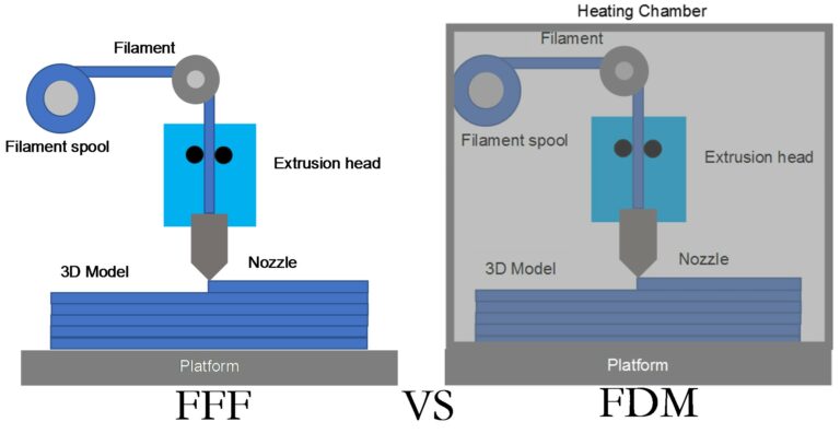 For another hand, FDM and FFF refer to the same process. While Stratasys first used FDM commercially, FFF was first coined by the hobbyist community for the same AM process.