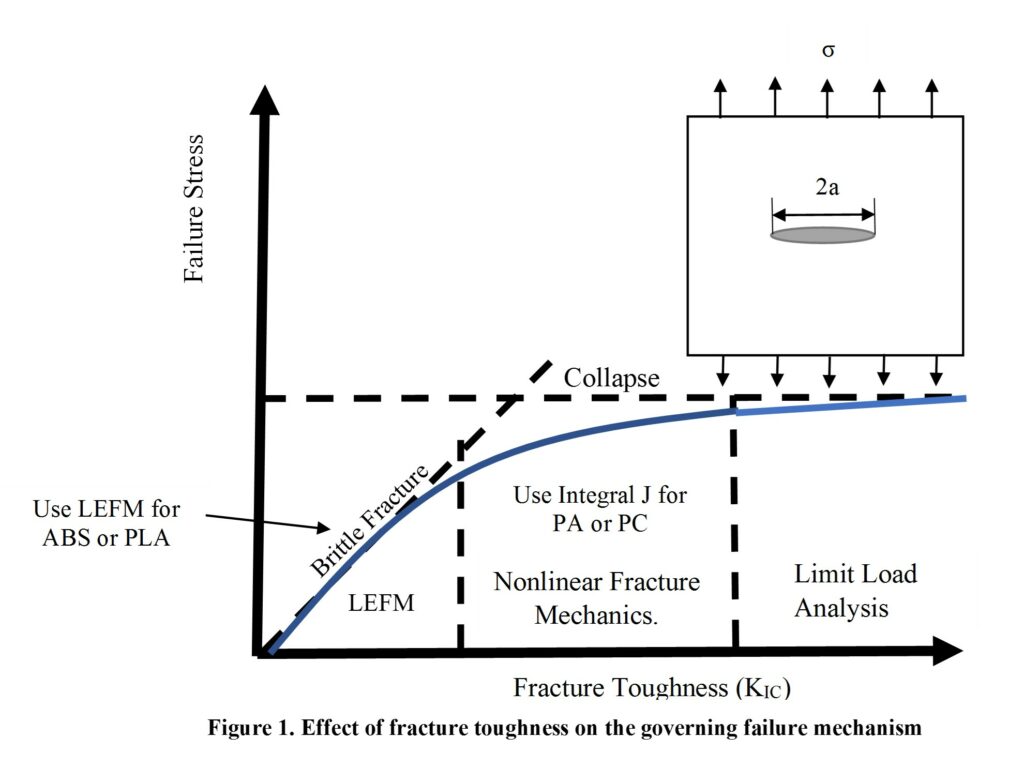 TEFA-10. To predict fracture failure and crack propagation in printed parts, use linear elastic theory for brittle materials such as ABS or PLA and J-integral for ductile materials such as PC or Nylon (PA).
