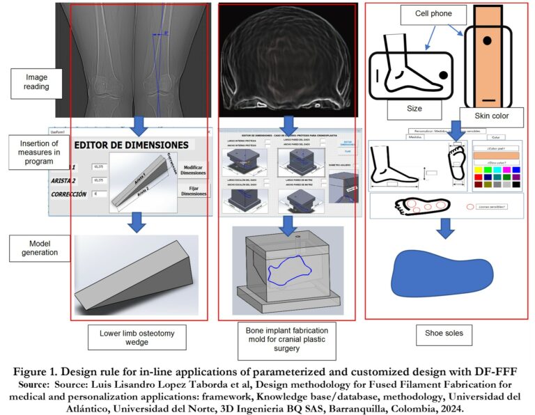 [1] Luis Lisandro Lopez Taborda et al, Design methodology for Fused Filament Fabrication for medical and personalization applications: framework, Knowledge base/database, methodology, Universidad del Atlántico, Universidad del Norte, 3D Ingenieria BQ SAS, Barranquilla, Colombia, 2024.