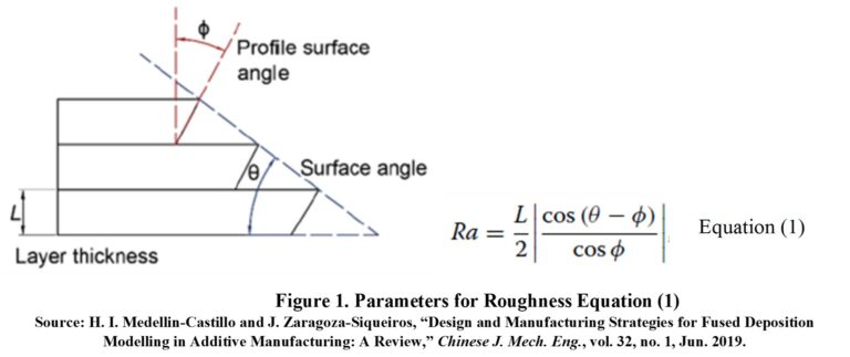 Ra (μm)L-height or layer thickness, θ-angle of surface with respect to the printing table, φ-angle of the surface profile, Ra-Roughness Ra8.7488663525924Roughness is calculated with Equation (1) [1] (see Figure 1): the original article is an algorithm to improve manufacturing time.