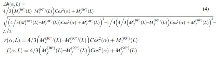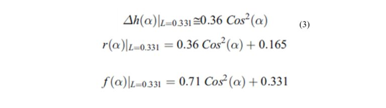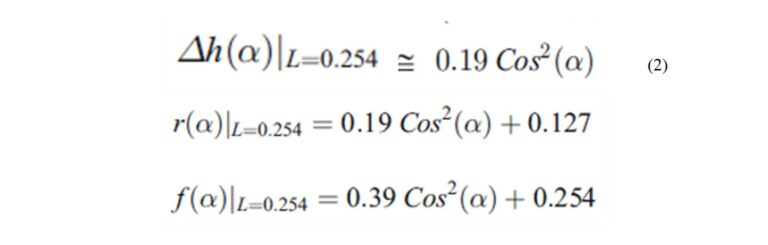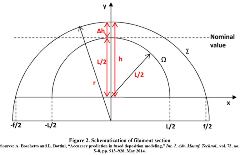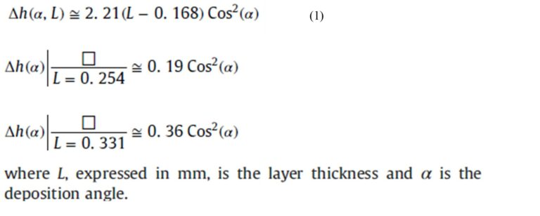 Mr and Mf are values of r-radius and f-spacing between filaments, measured at specific angles α indicated of 30° and 90°. Mr and Mf values were taken based on r and f measured in [3] and [4] at layer heights L of 0.254mm and 0.331mm, for FDM systems and ABS material.